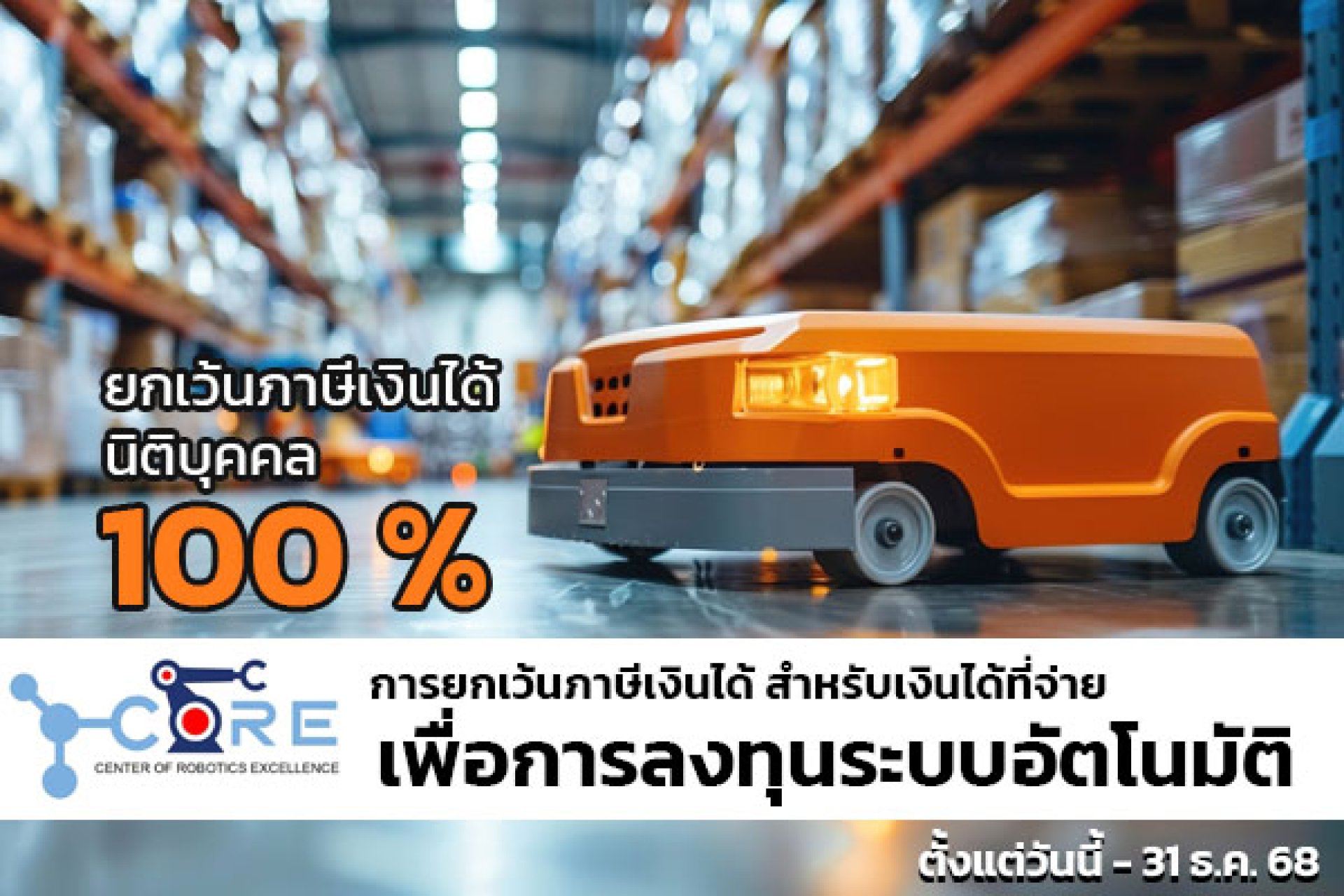 Center of Robotics Excellence หรือ CoRE ร่วมกับกรมสรรพากรชวนผู้ประกอบการยื่นขอยกเว้นภาษีเงินได้นิติบุคคล 100 เปอร์เซ็นต์